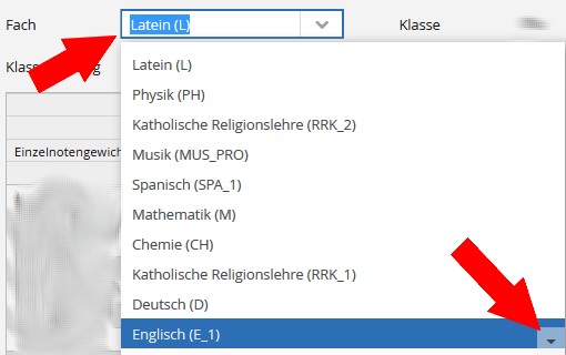 - Fach auswählen, falls Sie in dieser Klasse mehrere Fächer unterrichten oder Klassenlehrkraft sind